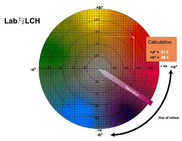 饱和度(彩度、鲜度)通常是指色彩的鲜艳度。从科学的角度看,一种颜色的鲜艳度取决于这一色相发射光的单一程度。色调的特征决定于光源的光谱组成以及有色物体表面反射的各波长辐射的比值对人眼所产生的感觉。是色彩可呈现出来的质的面貌,是区别各种不同色彩的最准确的标准。很多情况下我们一般使用(Lab)颜色空间来描述颜色,但是在某些场合下,如亮度、饱和度不变,但是色调变化的情况下我们一般使用Lch来描述颜色。比如葡萄干颜色的分类,测量蜂蜜颜色的变化等等。