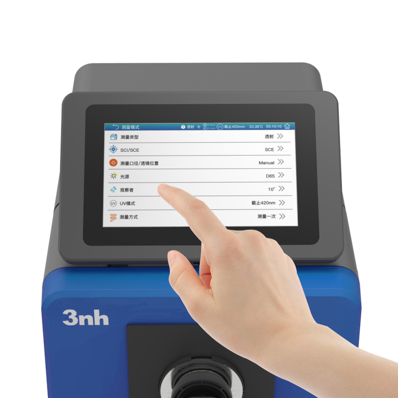 | 特性 | 1.塑胶电子、油漆油墨、纺织服装印染、印刷等行业等广泛应用。 2.10.5吋独立可旋转平板电脑,128G存储空间,摄像头实时取景。 3.仪器可侧面测量、朝上测量、朝下测量(使用配件)等多姿态放置测量。 4.敞开式透射仓,可测试厚度54mm透射样品。 5.自动温湿度补偿功能。 6.内置全光谱高寿命LED光源和氙灯光源,测试荧光样品有更好的识别度。 |